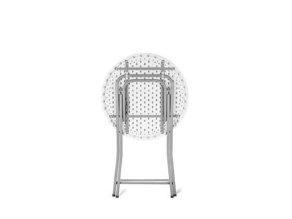 Šis elegants augstais kokteiļu galds ir ideāls stāvvietu pasākumiem, piemēram, banketiem, reklāmas aktivitātēm un izstādēm. Tam ir izturīga 80 cm diametra polietilēna virsma un stabils pulverkrāsots tērauda rāmis, kas nodrošina ilgmūžību un stabilitāti.