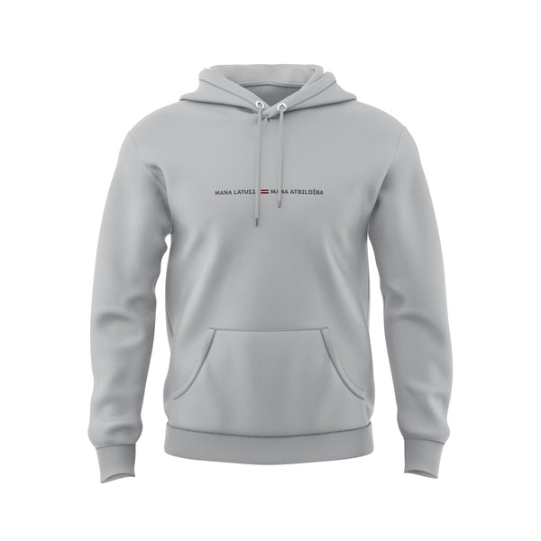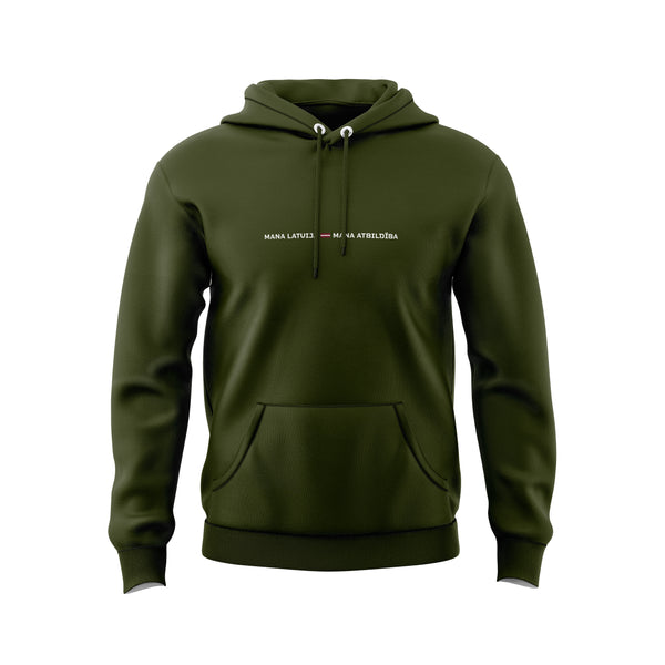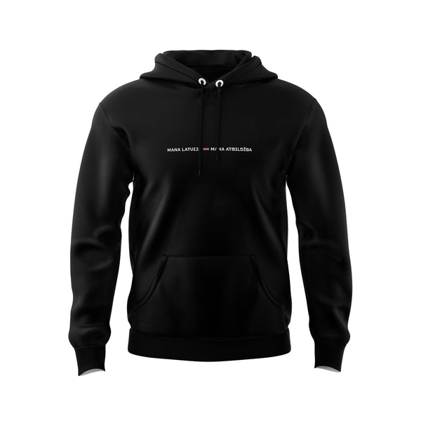 Ērts un silts hūdijs ar vēstījumu par atbildību par savu valsti. Biezs, kvalitatīvs audums, kas saglabā formu un izskatu pat pēc daudz mazgāšanas reizēm.
